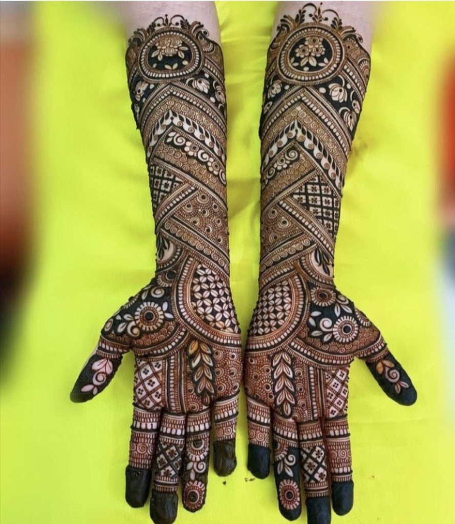 Rajasthani Mehndi’s designs encapsulate multiple blocks in a square, zigzag or rectangular shape.